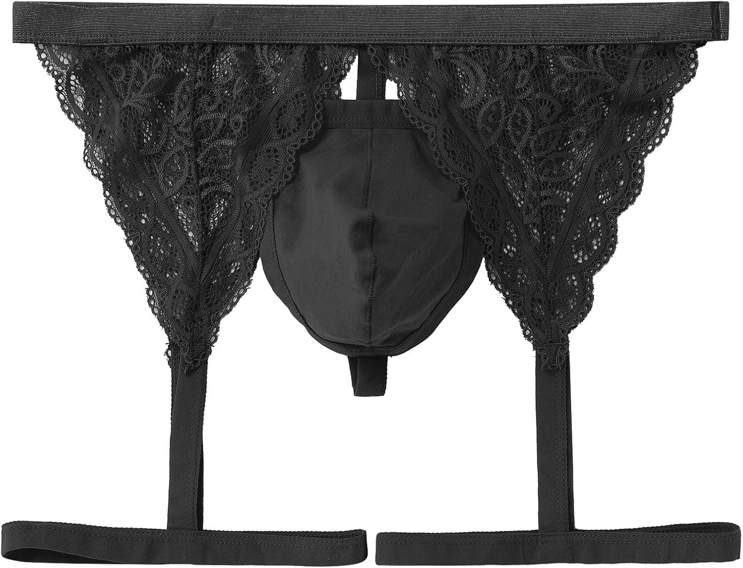 ABAFIP Men's Lace Garter Panties Underwear Low Waist Jockstrap Crossdressing Lingerie Underpants