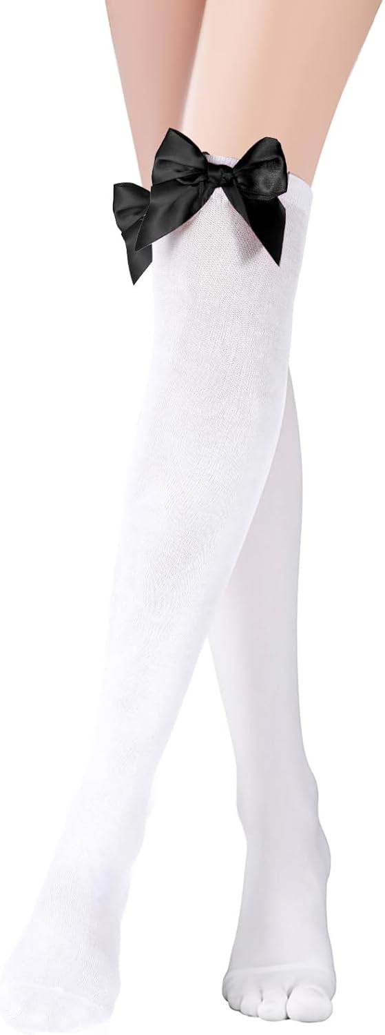 Thinp Women's Cotton Opaque Knee High Socks Smooth Edge Bow Socks Cute Soft Knee Uniform Dress Sock with Bow Lolita Gothic