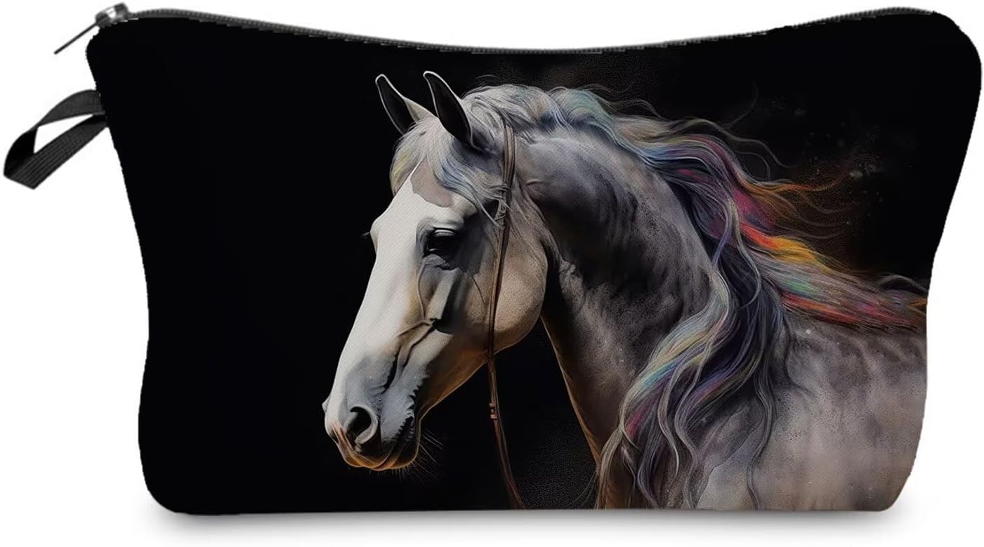 - 2.Fashion Design: The Horse cosmetic bag has a clear and vibrant design, double-sided printing. There are different kinds of cute, lovely, funny and beautiful patterns to choose. The makeup bag fits both the popular aesthetic and unique personalities