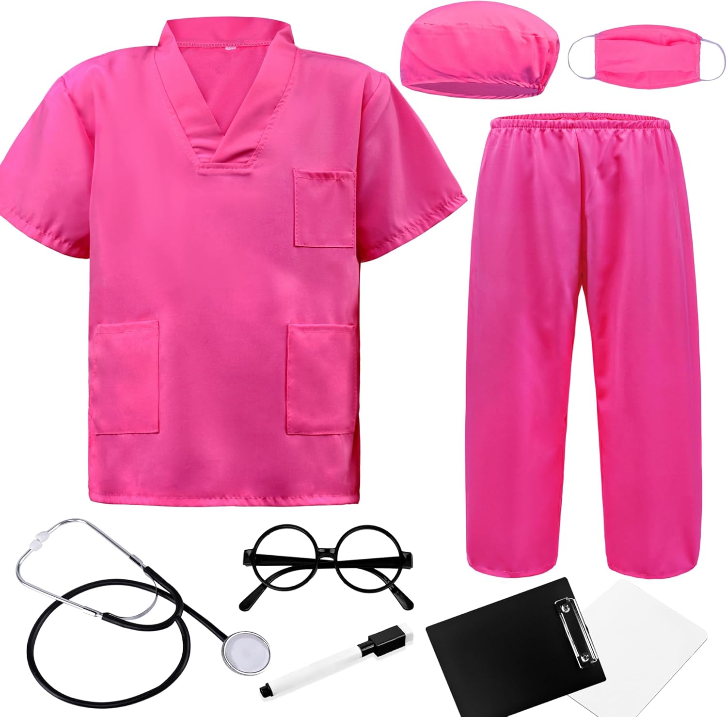 ZZIHAN Doctor Costume for Kids & Toddlers 9Pcs Scrubs Set for Boys & Girls Ages 3-12, Halloween, Career Day, Dress-Up Play