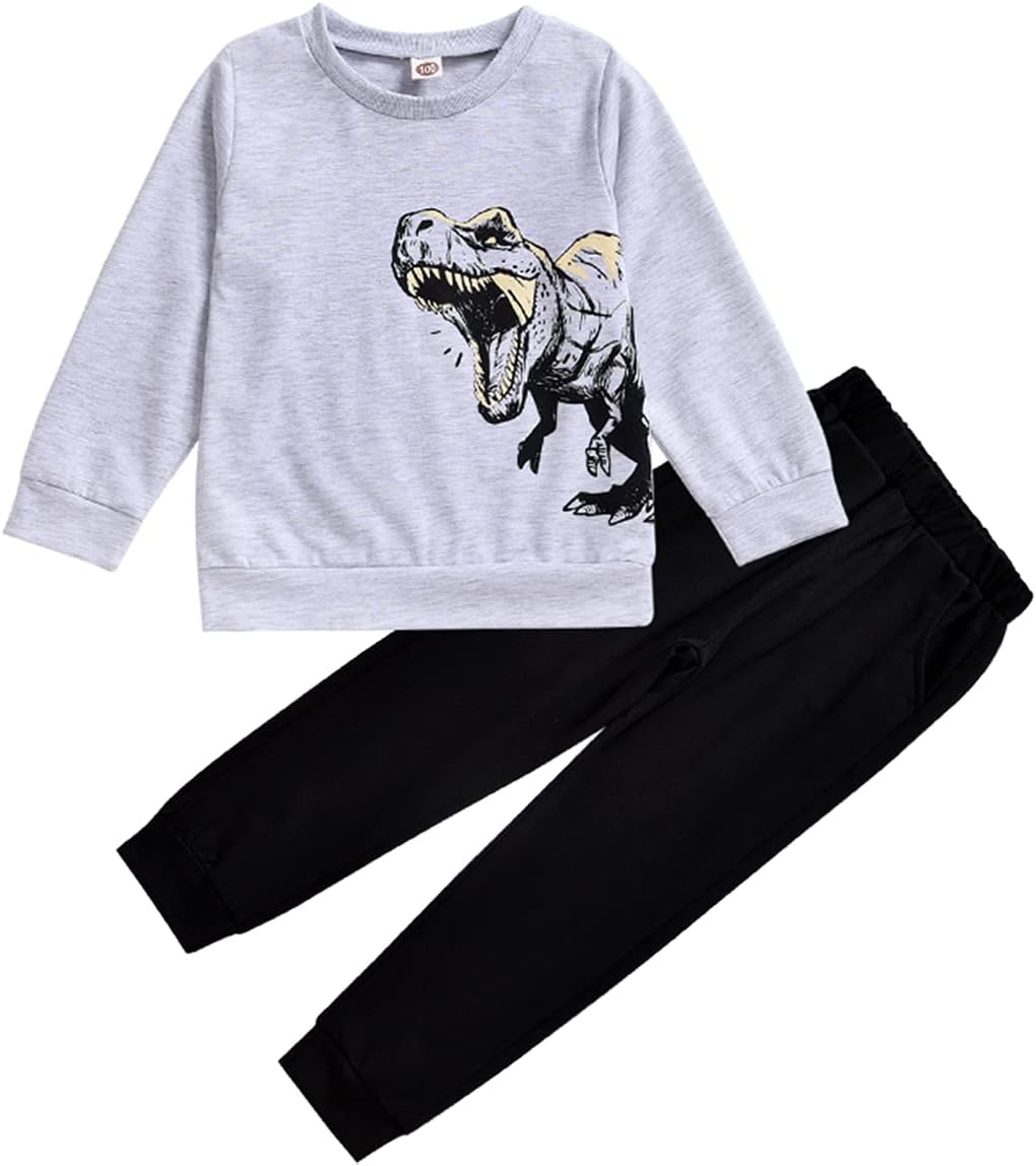 HINTINA Toddler Boy Sweatshirt Outfits Long Sleeve Dinosaur Top Pants Sweatsuit 2PCS Fall Winter Outfits Set