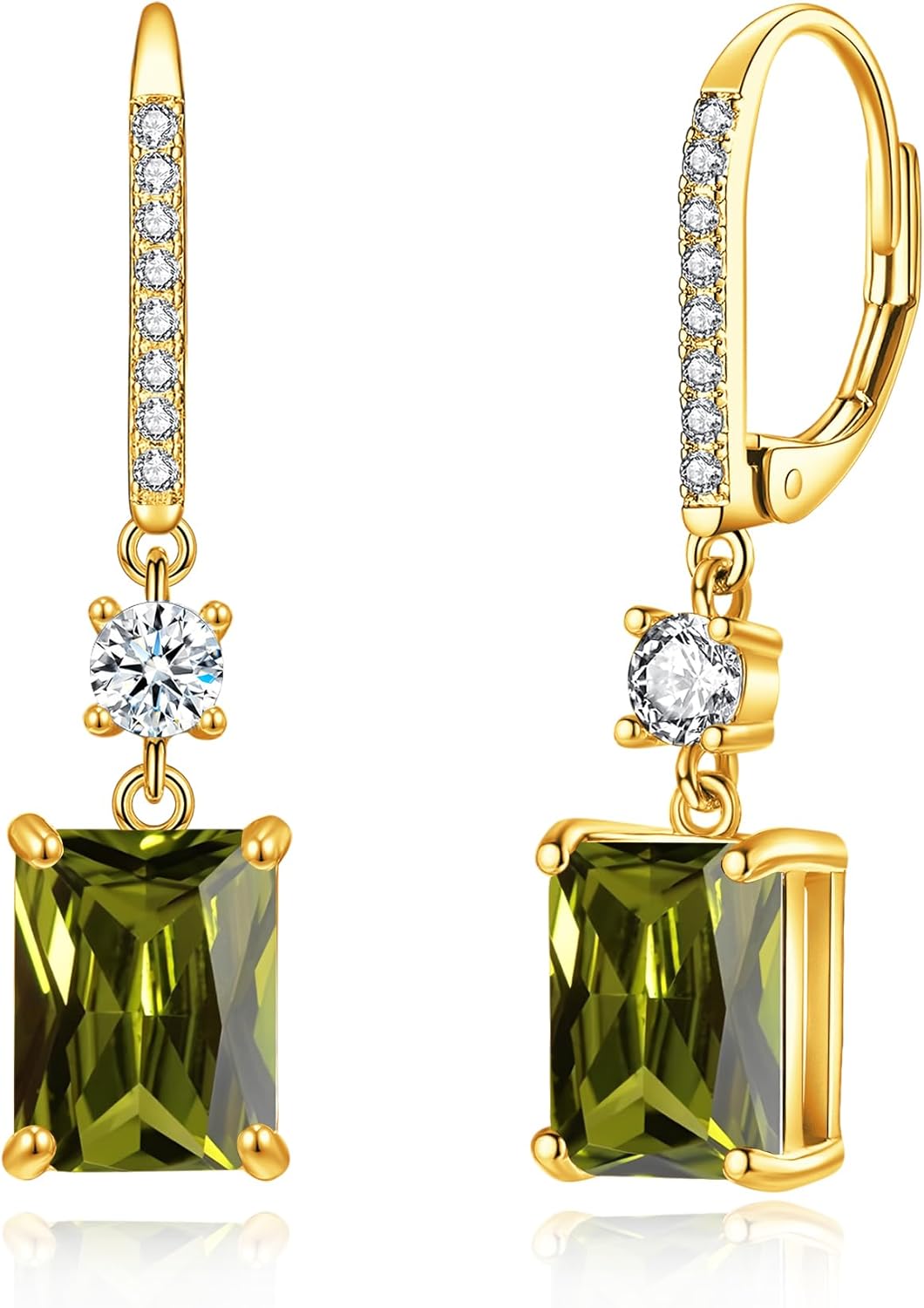 CiNily Rectangular-cut Drop Dangle Earrings for Women Hypoallergenic, Multi-color Cubic Zirconia Earrings Diamond Dangle Earrings Jewelry Gifts for Mothers Day 14K White Gold