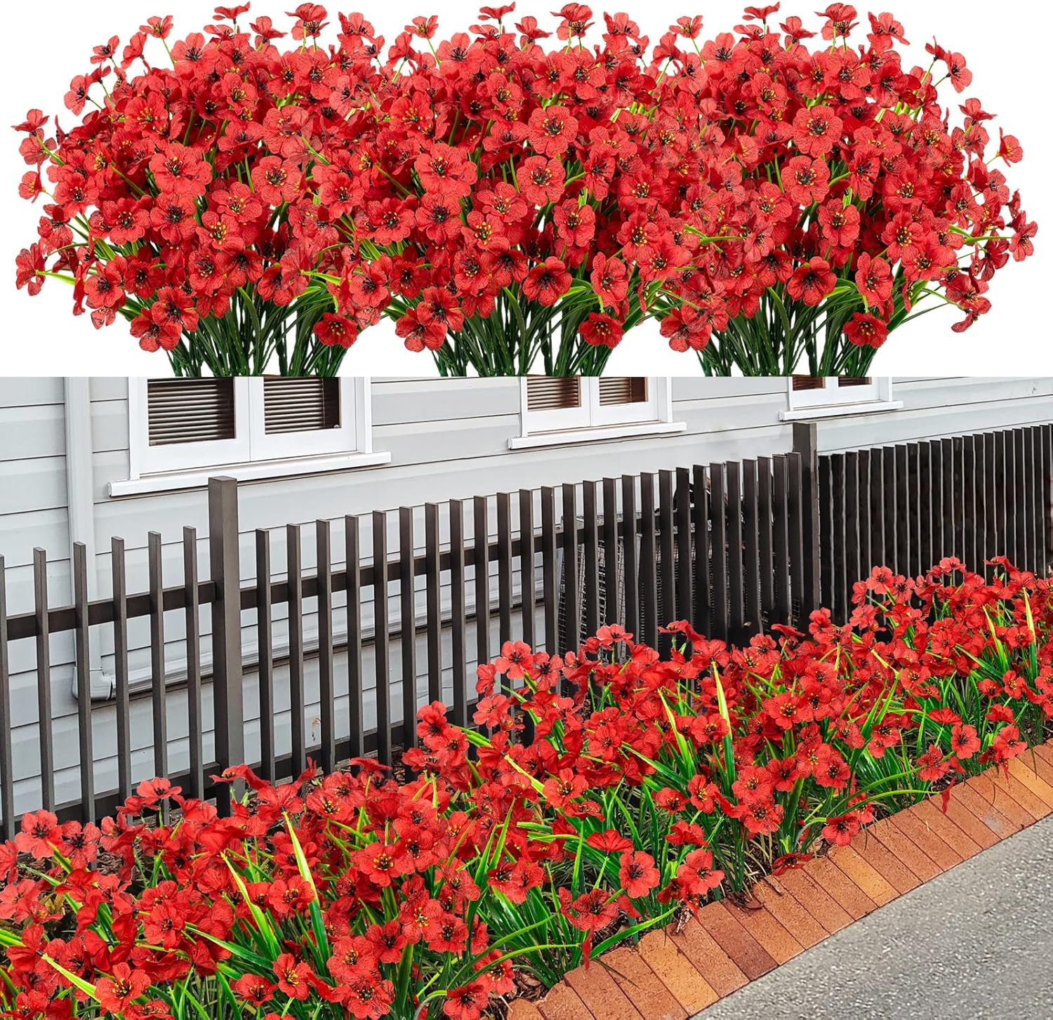 21 Bundles Artificial Outdoor UV Resistant Flowers No Fade Fake Outside Flowers Plastic Greenery Faux Shrubs Garden Porch Window Box Home Decoration (red)