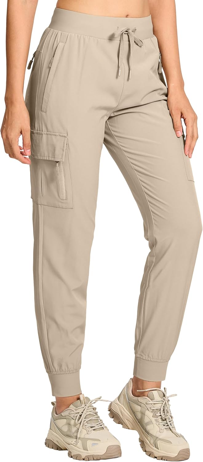 BVVU Women's Cargo Joggers Hiking Pants High Wasited Lightweight Quick Dry with Zipper Pockets Waterproof Athletic Sweatpants