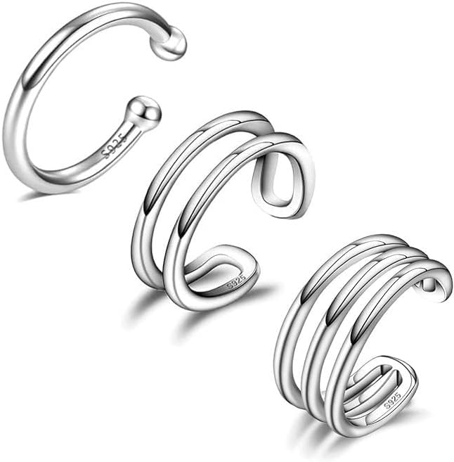 CHIC & ARTSY Sterling Silver Ear Cuff Set - Hypoallergenic, Simple, Adjustable No Piercing Clip on Earrings