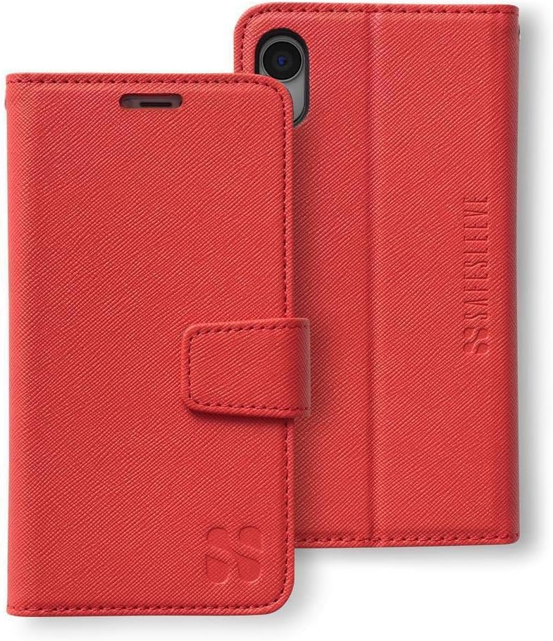 SafeSleeve Wallet Leather Case for iPhone XR EMF Blocker for Cell Phone with 3 Card Holder & Adjustable Stand – Magnetic Closure, and Magnetic Folio Protection for Daily Use (Red)