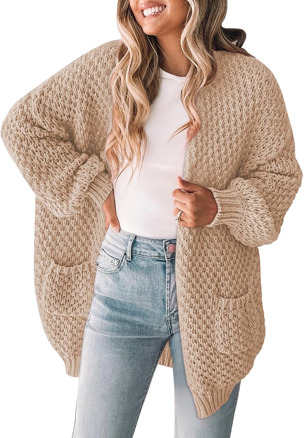 Pink Queen Women 2026 Fall Oversized Sweaters Cardigan Lantern Sleeve Chunky Knit Outwear Coats with Pockets