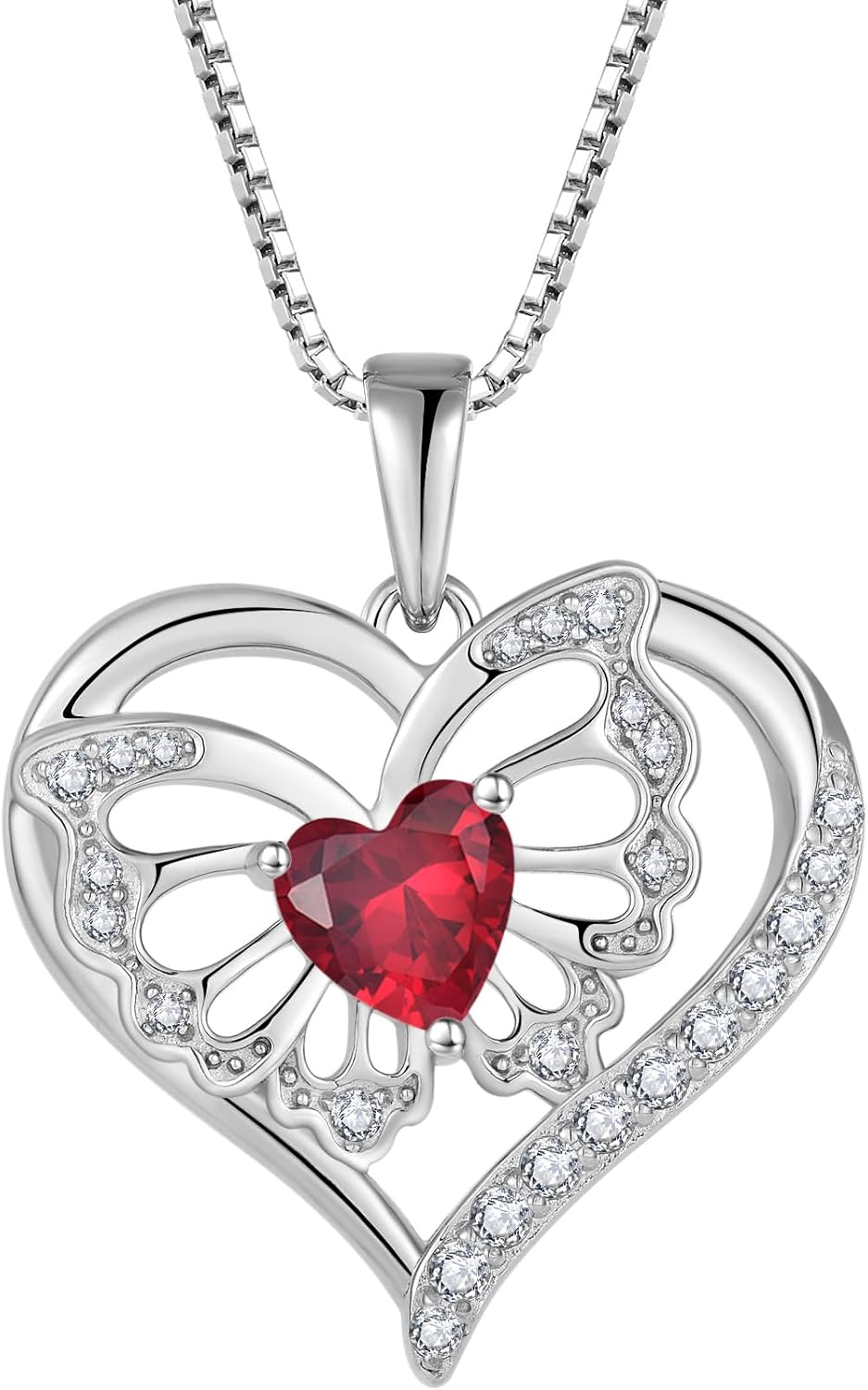 Butterfly Necklace for Women 925 Sterling Silver Love Heart Necklace Birthstone Pendant Jewelry Gifts for Women Her Mom Wife