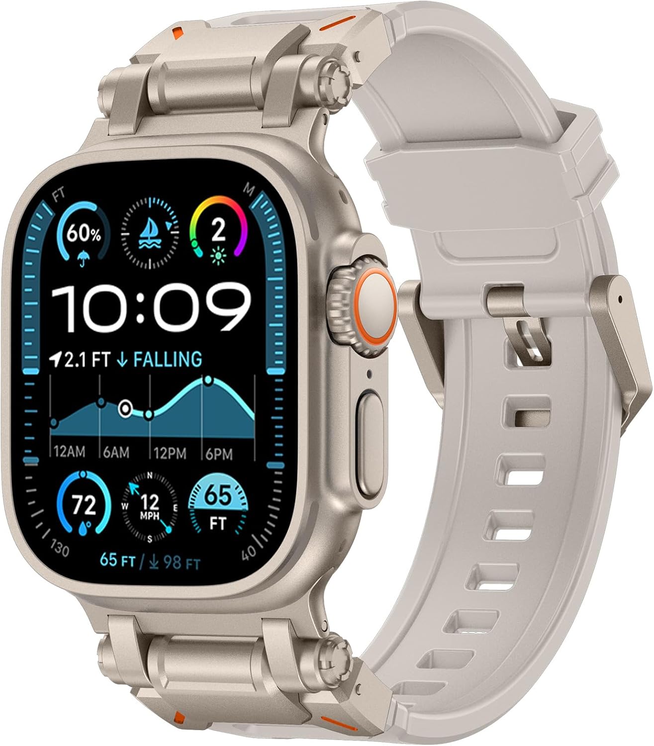- Rugged Sport Silicone Band: The apple watch rugged band is constructed from flexible FKM rubber, a soft yet strong fluoroelastomer that combines all-day comfort with lasting durability, breathable and non-irritating, perfect for all exploration like running, hiking, mountaineering, riding, traveling, rock climbing, swimming, diving, skiing.