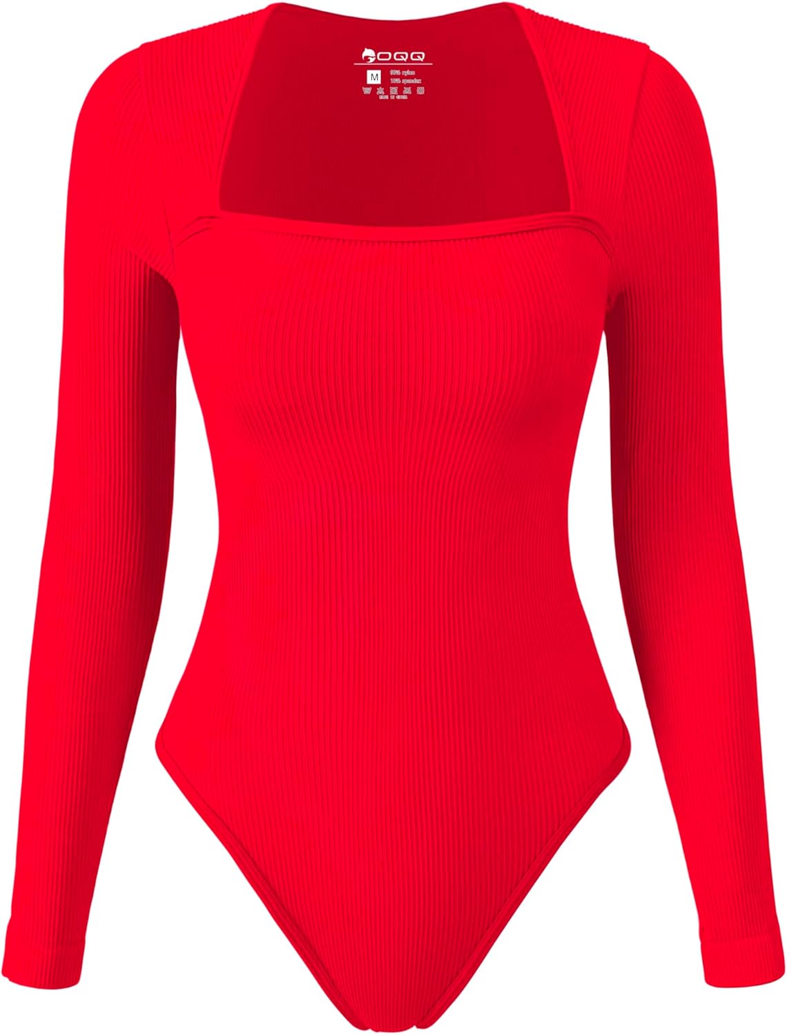 OQQ Women's Bodysuits Sexy Ribbed Square Neck Long Sleeve Tummy Control Casual Fall Bodysuits