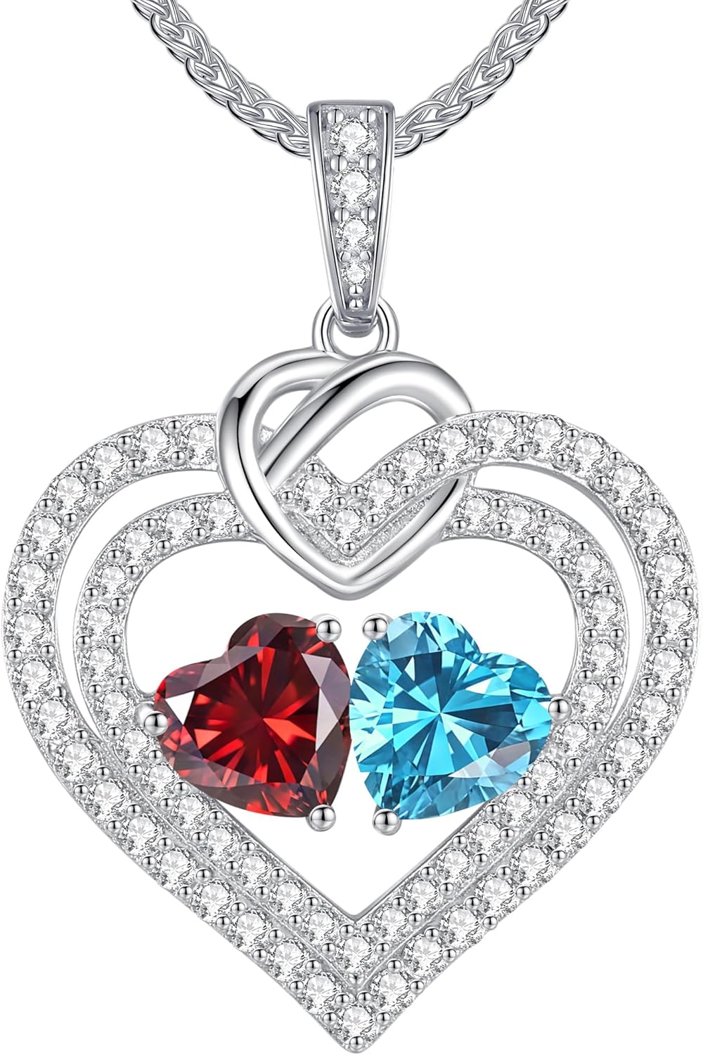 LOUISA SECRET Sparkling Double Heart Birthstone Necklaces for Women, 925 Sterling Silver Fine Jewelry, Pendant Heart Necklaces Birthday Anniversary Christmas Gift for Women Wife Mom Girlfriend Lady