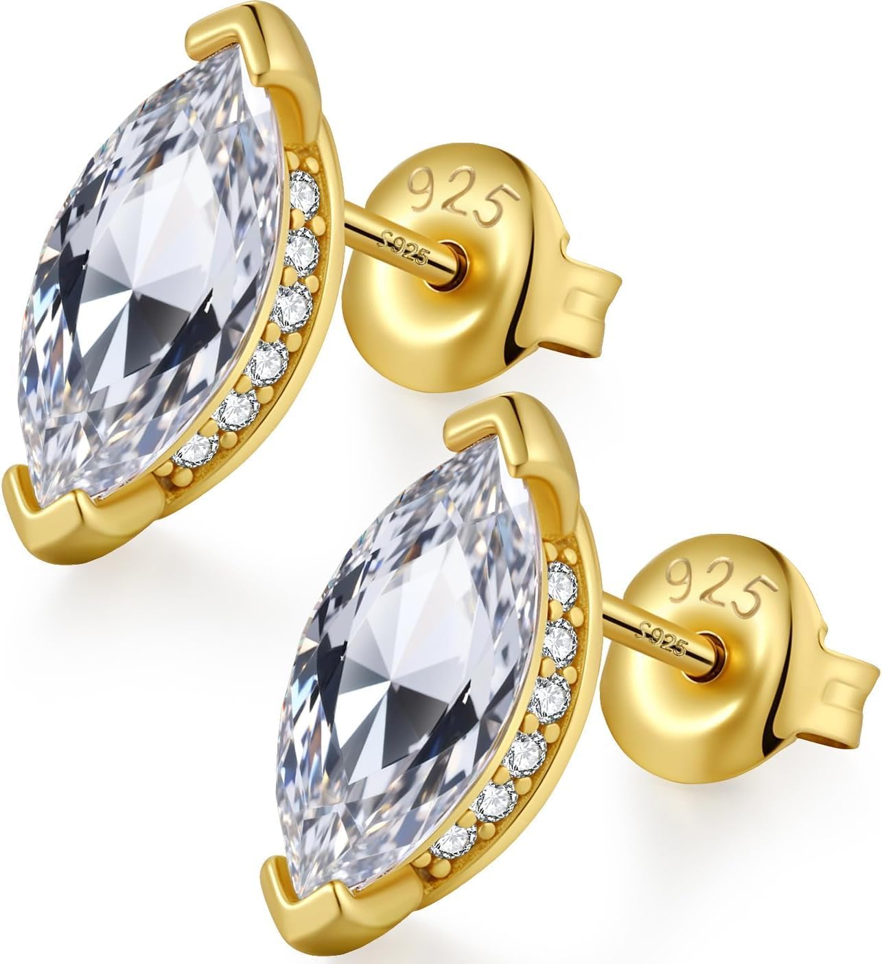 18K White Gold Plated Simulated Diamond Sparkly Stud Earrings 925 Sterling Silver 5A CZ Cubic Zirconia Size Small/Medium/Large Fine Jewelly for Women Men