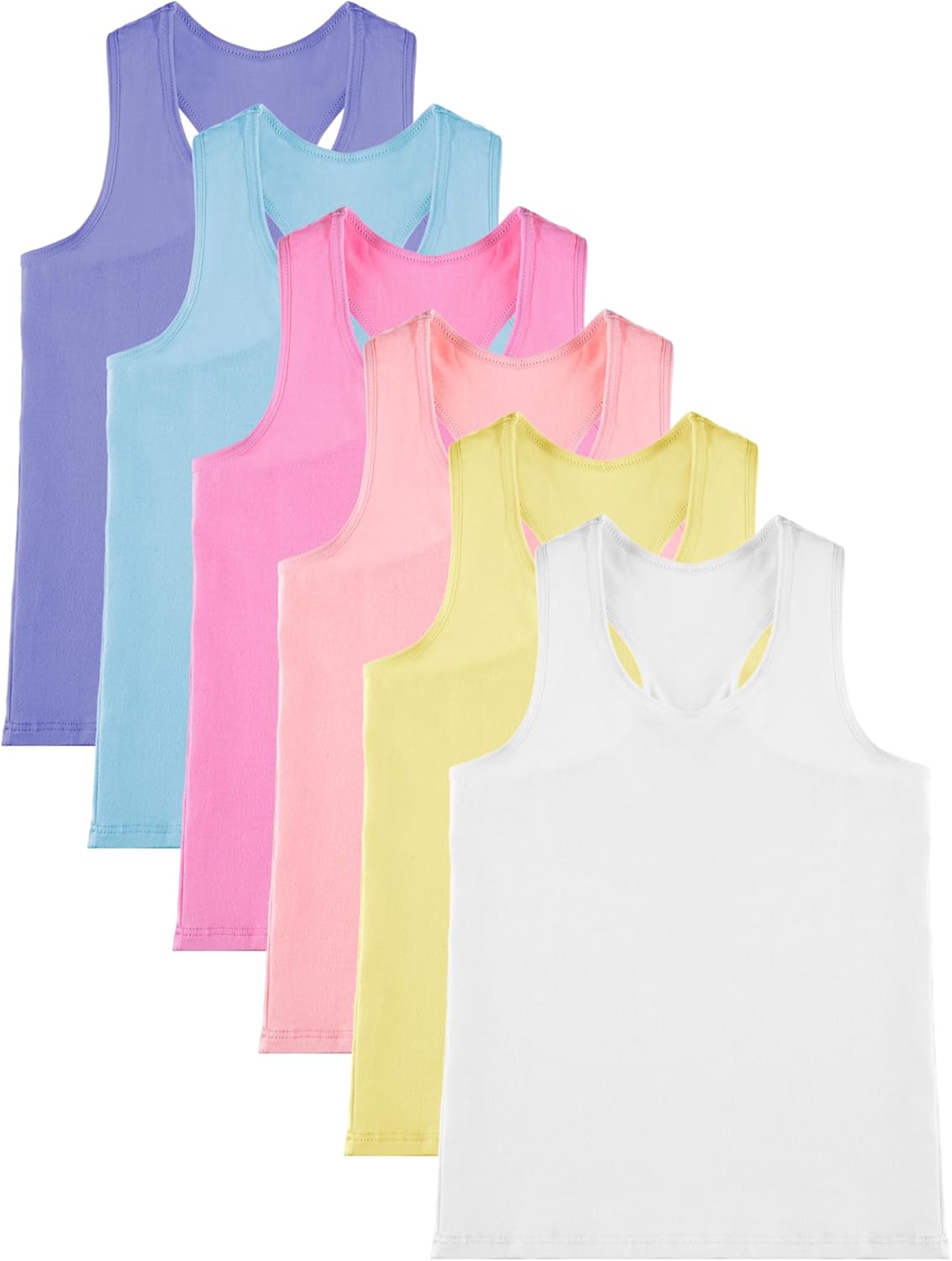 Geyoga 6 Pieces Girls Dance Tank Top Racerback Crop Top Sleeveless Dance Outfit for Ballet Hip hop Athletic wear(3-4 Years,Macaron Color)