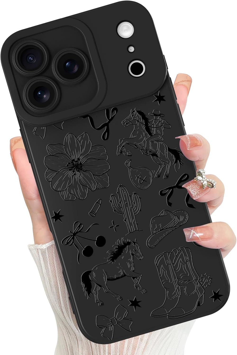 - 【Cute Design】:The Black Western cowboy Pattern on the shell make the phone full of luxury, without fading, making your phone more fashionable and beautiful