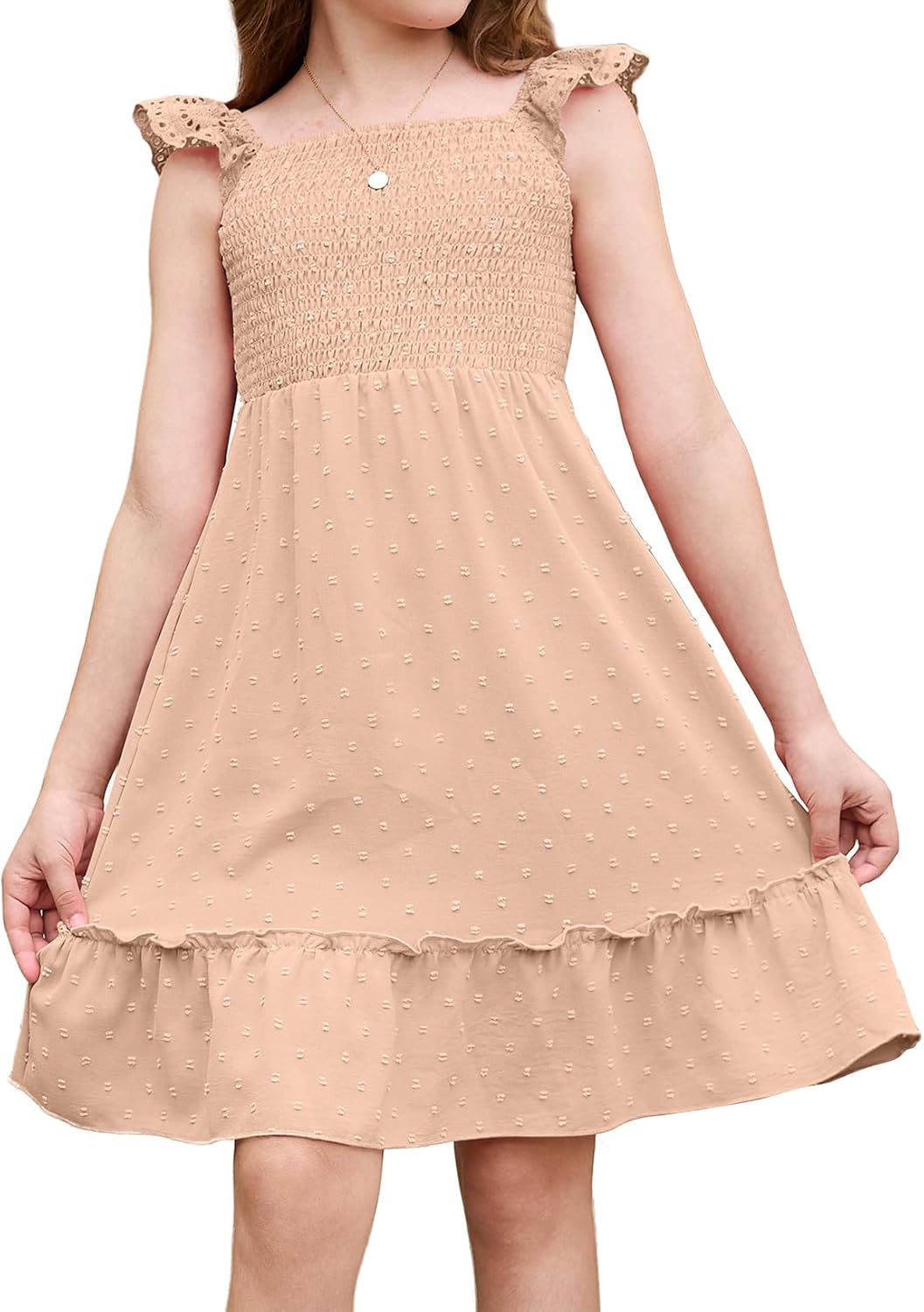blibean Girls Short Sleeve Dresses Swiss Dot Dress Size 6-15 Years