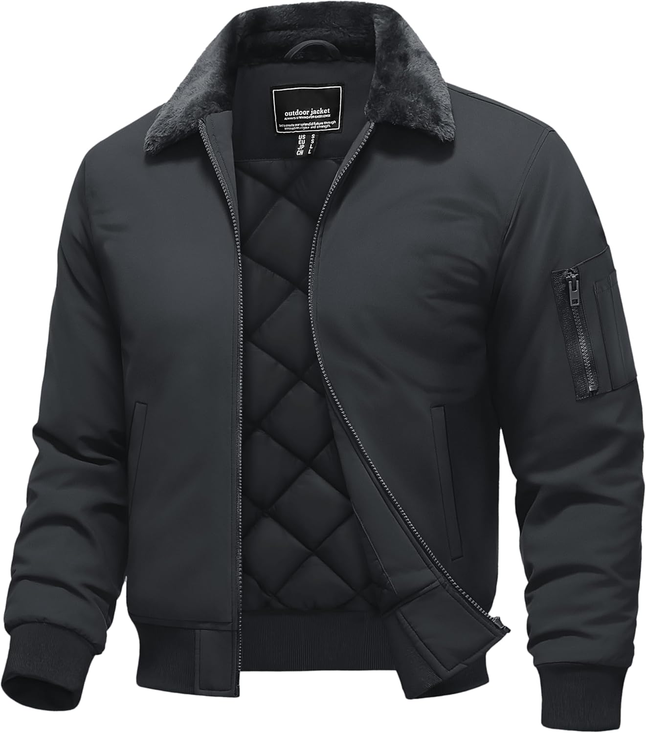 TACVASEN Men's Bomber Jacket Winter Fleece Jacket Water Repellent Windproof Thick Warm Jacket with Fur Collar