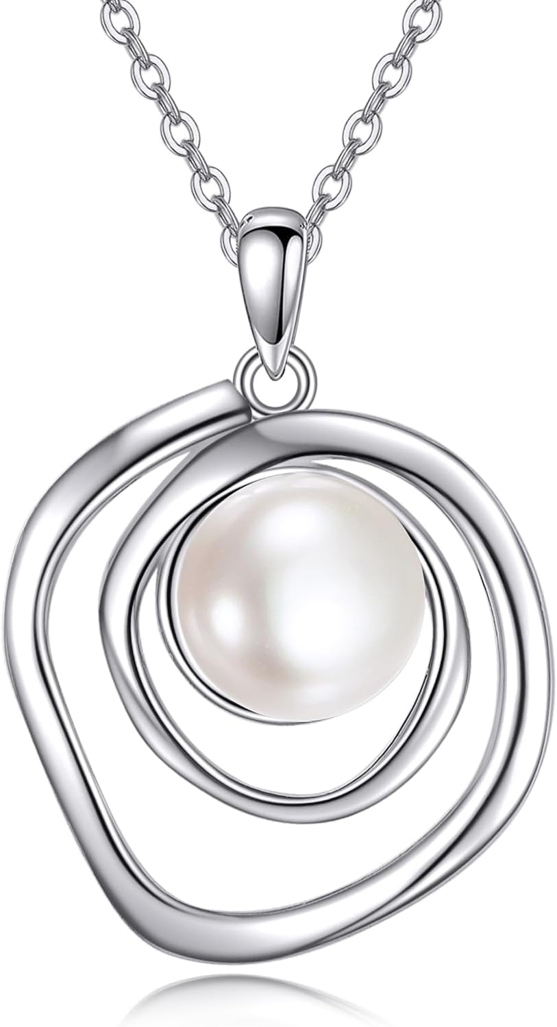 POPLYKE White/Black/Pink/Turquoise/White Opal/Rose Gold Pearl Necklaces for Women Sterling Silver Pearl Pendant Jewelry for Women Mom Wife