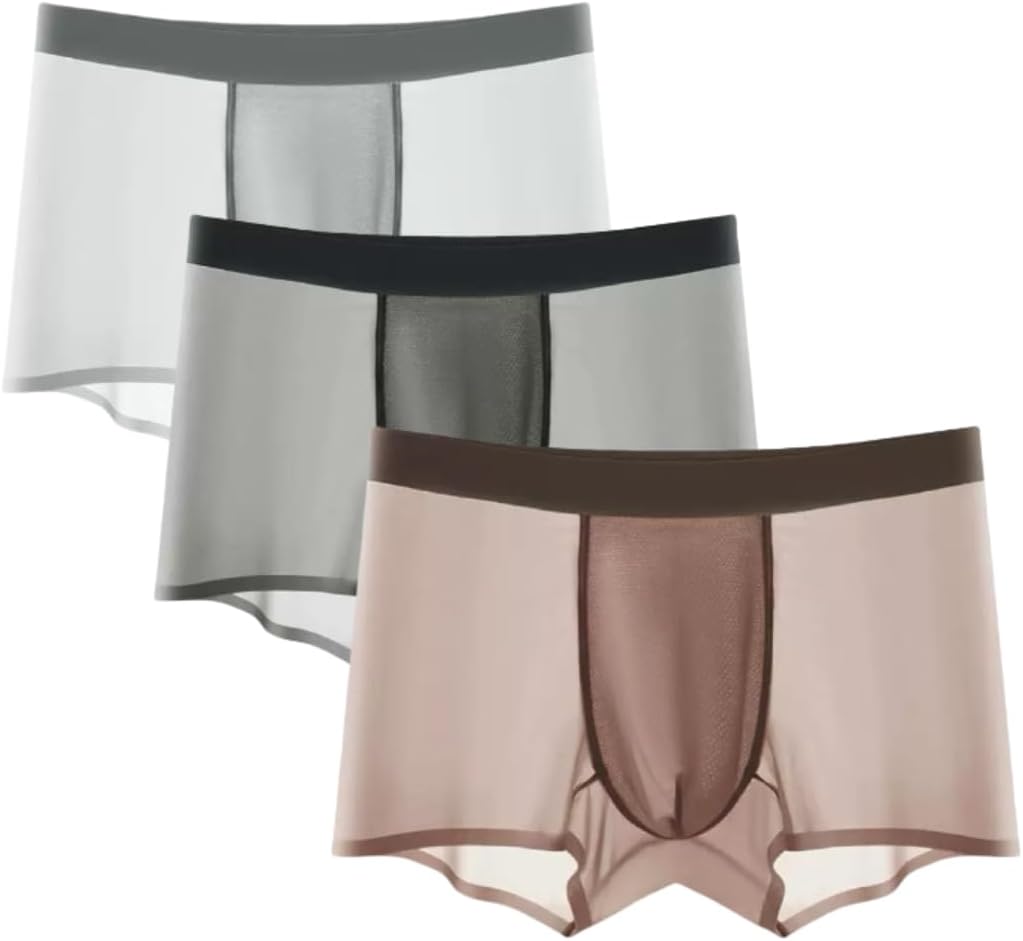 Men's Ice Silk Ultra-Thin Boxer Briefs Panties, Seamless Men Boxer Shorts U Bulge Underwear Breathable Underpants