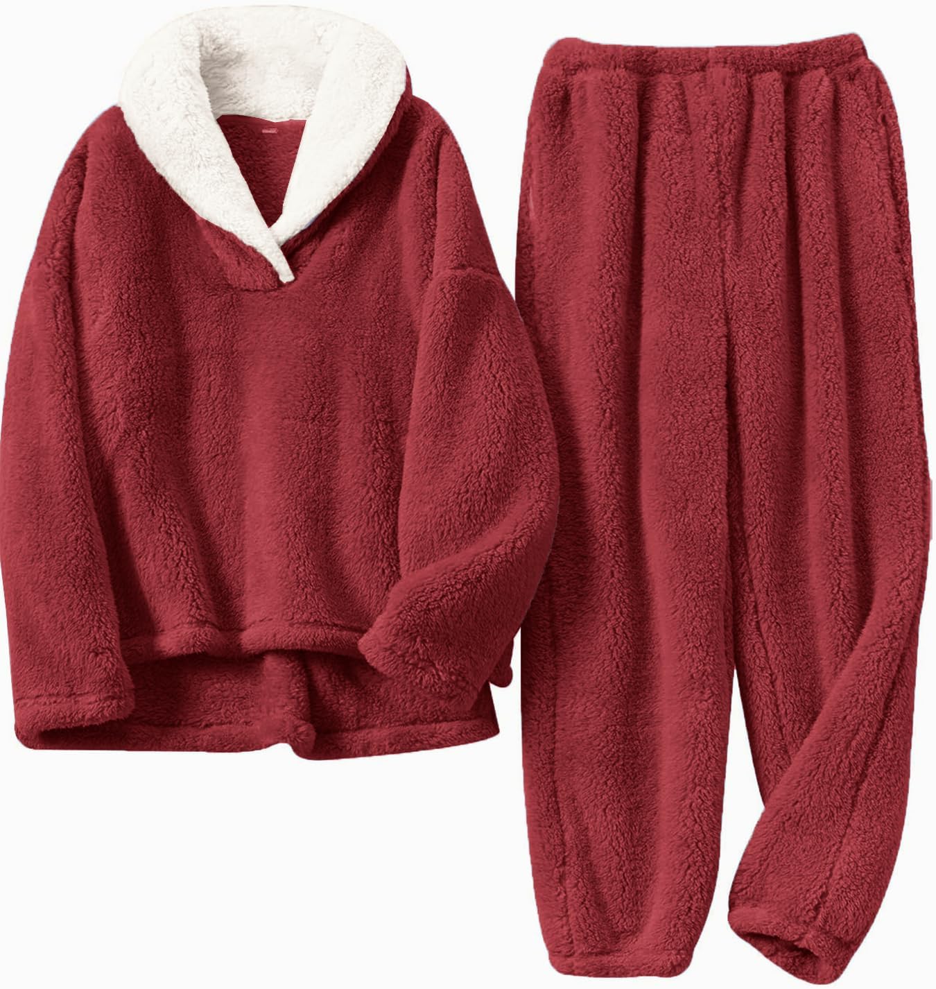 Muchpow Womens Fluffy Pajamas Set Winter Warm Fleece Oversized Pullover Fuzzy Pants Sets Plush Loungewear 2 Piece Pjs