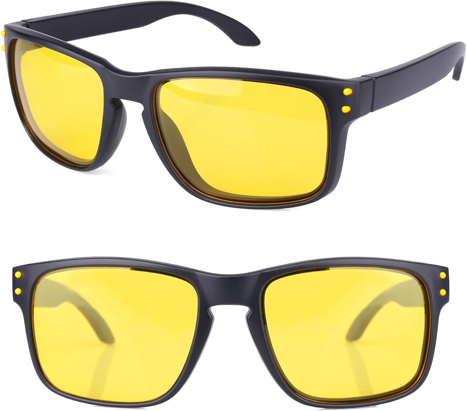 Night Driving Glasses for Men Women, Classic Square Sunglasses Anti Glare Polarized Night Vision Glasses