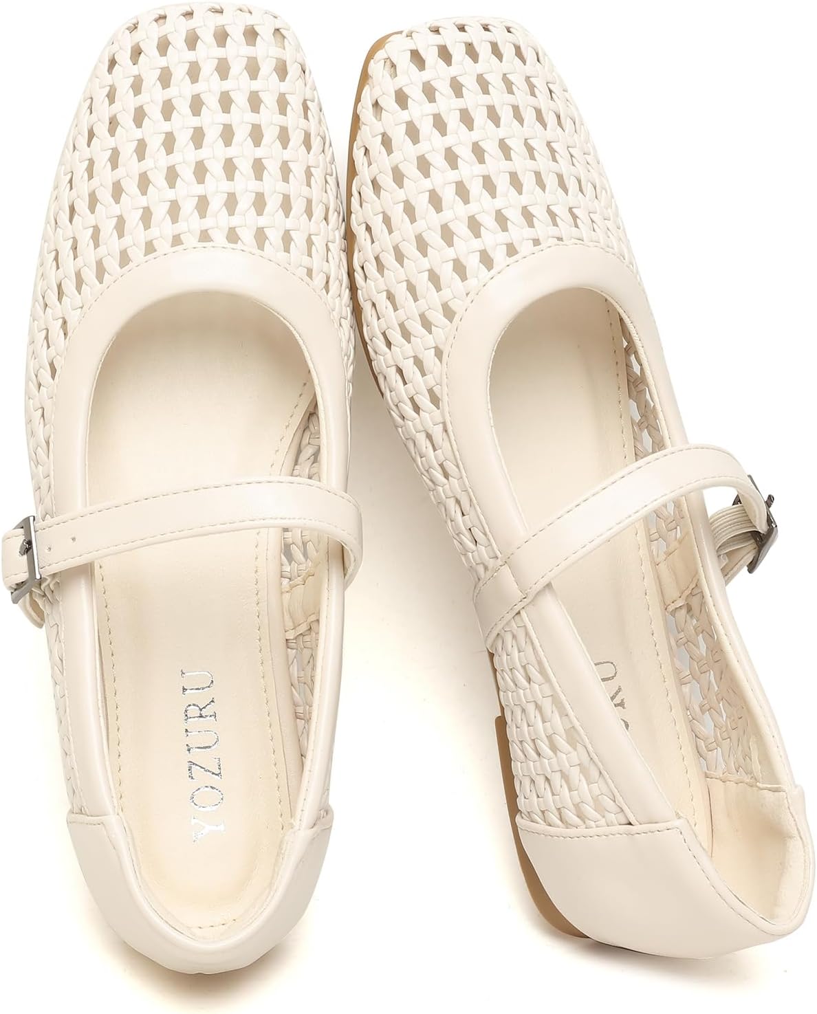 Yozuru Womens Woven Ballet Flats Mesh Mary Jane Shoes Dressy Squared Toe Comfortable Buckle Strap Casual Leather Flats for Women