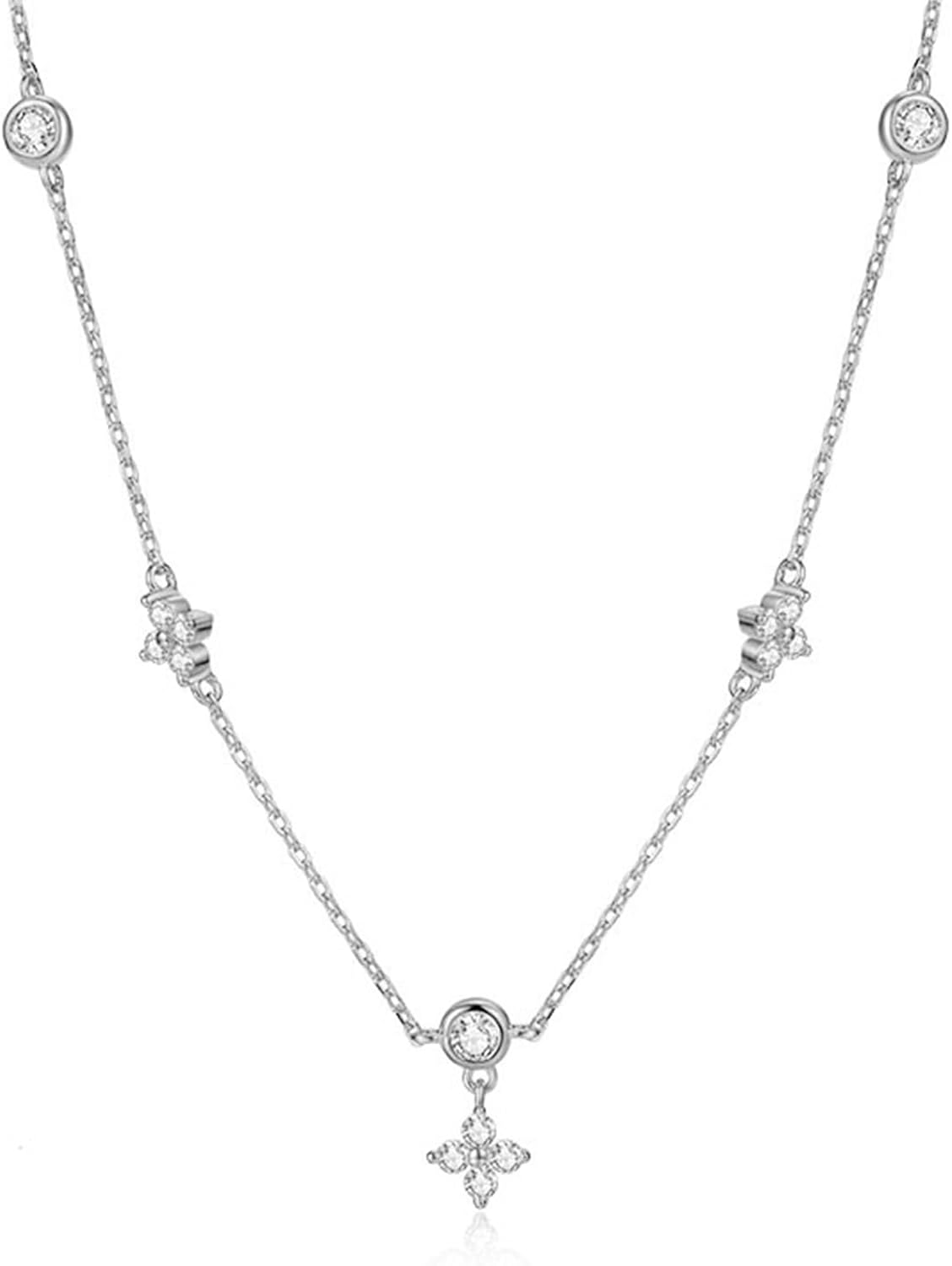 BG&WLing Four Leaf Clover Choker Necklace for Women 18K Gold Plated Floral Pendent Necklaces with CZ Crystal Dainty Jewelry Gift With Box