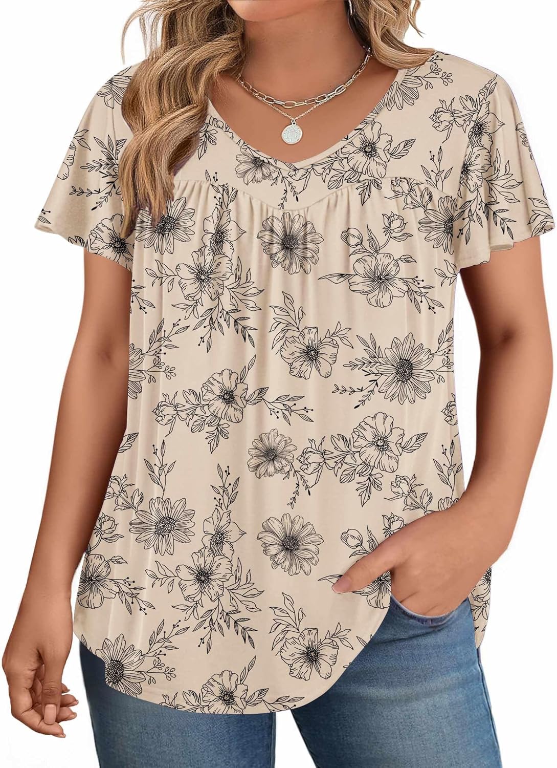 IN'VOLAND Plus Size Womens Ruffle Sleeve Tunic Tops V Neck Summer Shirts Floral Print Tops Dressy Blouse