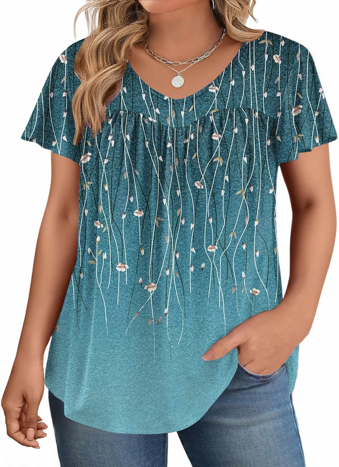 IN'VOLAND Plus Size Womens Ruffle Sleeve Tunic Tops V Neck Summer Shirts Floral Print Tops Dressy Blouse