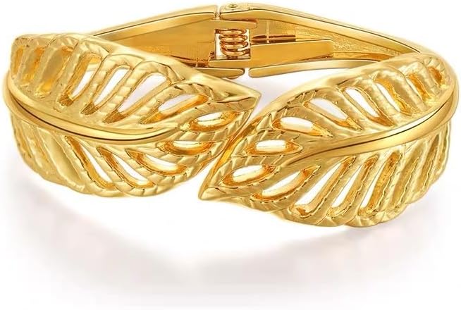 Hollow Leaf Wrap Hinged Statement Bangle Bracelet for Women Modern Wide Chunky Leaves Open Cuff Bracelets Trendy Thick Arm Wrist Bridal Wedding Party Holiday Boho Fashion Jewelry