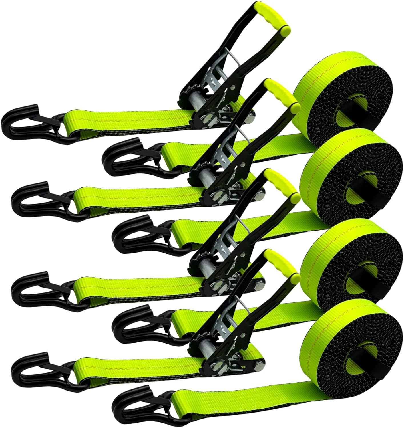Ratchet Straps Heavy Duty w/Forged J Hooks Tie Down Straps,2" x 27' 10000lbs Break Strength,Heavy-Duty Neon Green Polyester Webbing for Cargo Control,Truck,Trailer,Motorcycle,ATV & Boat(4 Pack)
