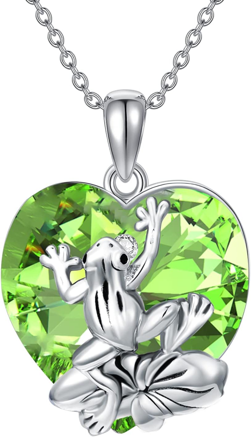 Frog Necklace Sterling Silver Frog Pendant Necklace Jewelry for Women Embellished with Heart Crystal