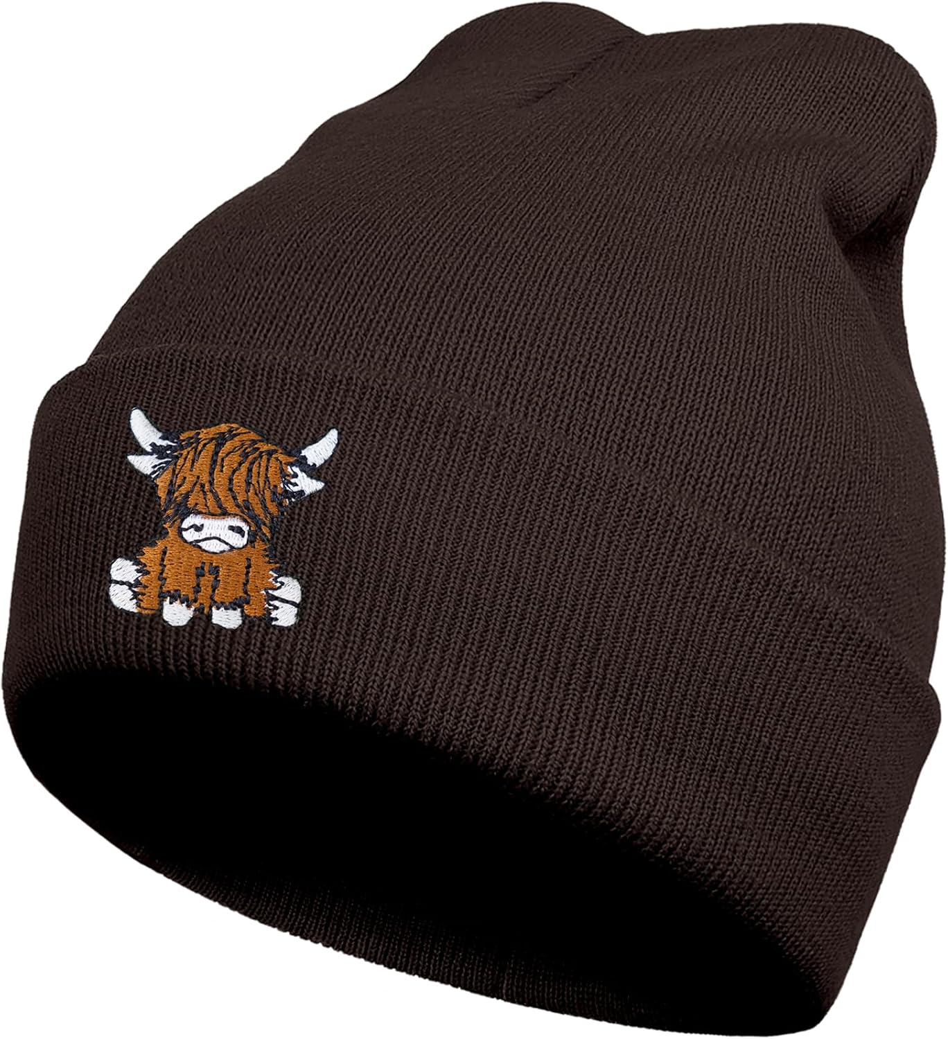 Scottish Highland Cow Beanie Hat, Cute Funny Cow Embroidery Winter Knit Skull Cap for Adult Men Women