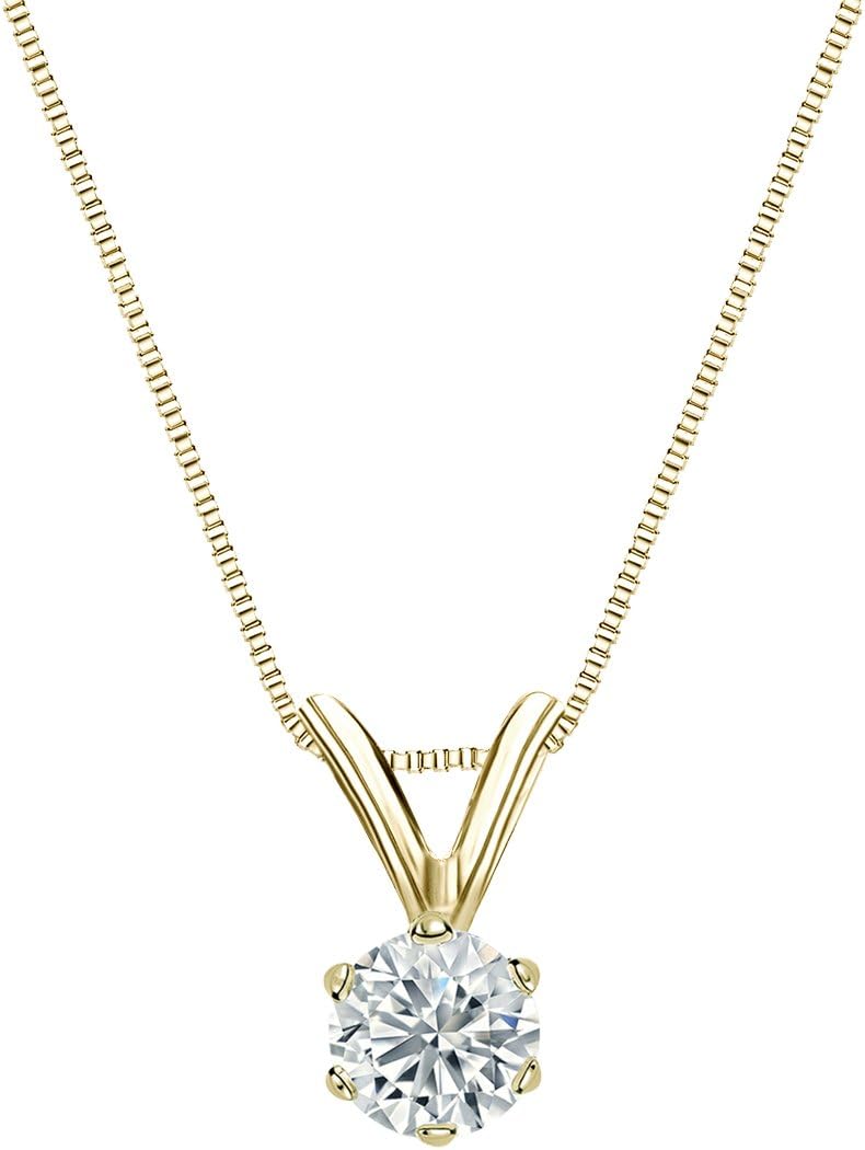 14k Yellow Gold 6-Prong Basket Round Diamond Solitaire Pendant (1/5-1 cttw, Good, I2-I3)
