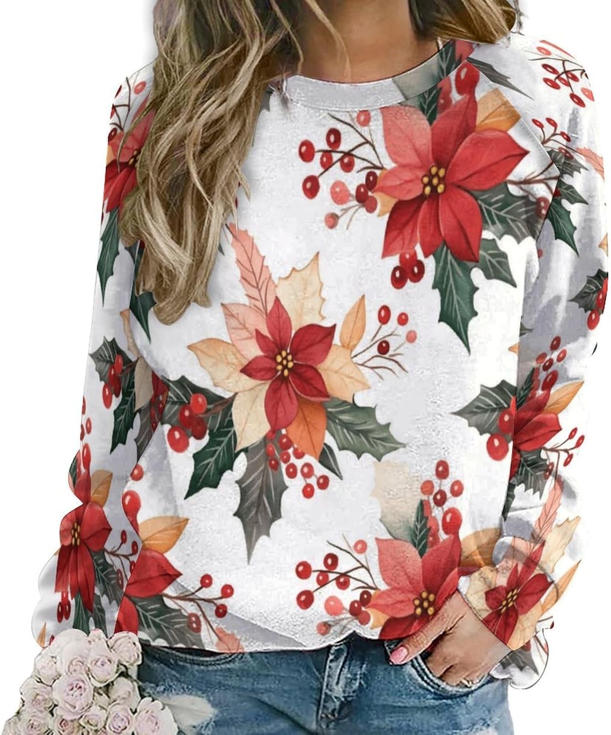 Christmas Pug Women Sweaters Fall Crewneck Sweatshirt Long Sleeve Sweater Pullover Tops