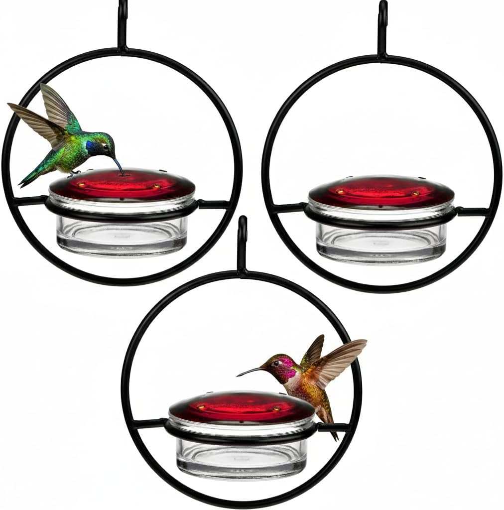 - 𝗘𝗮𝘀𝘆 𝘁𝗼 𝗖𝗹𝗲𝗮𝗻 & 𝗠𝗮𝗶𝗻𝘁𝗮𝗶𝗻: The detachable lid and bowl make cleaning quick and simple. Just hand-wash, refill, and hang again. Designed for everyday use, our hummingbird feeder glass style keeps nectar fresh and inviting, so your garden stays alive with fluttering color.