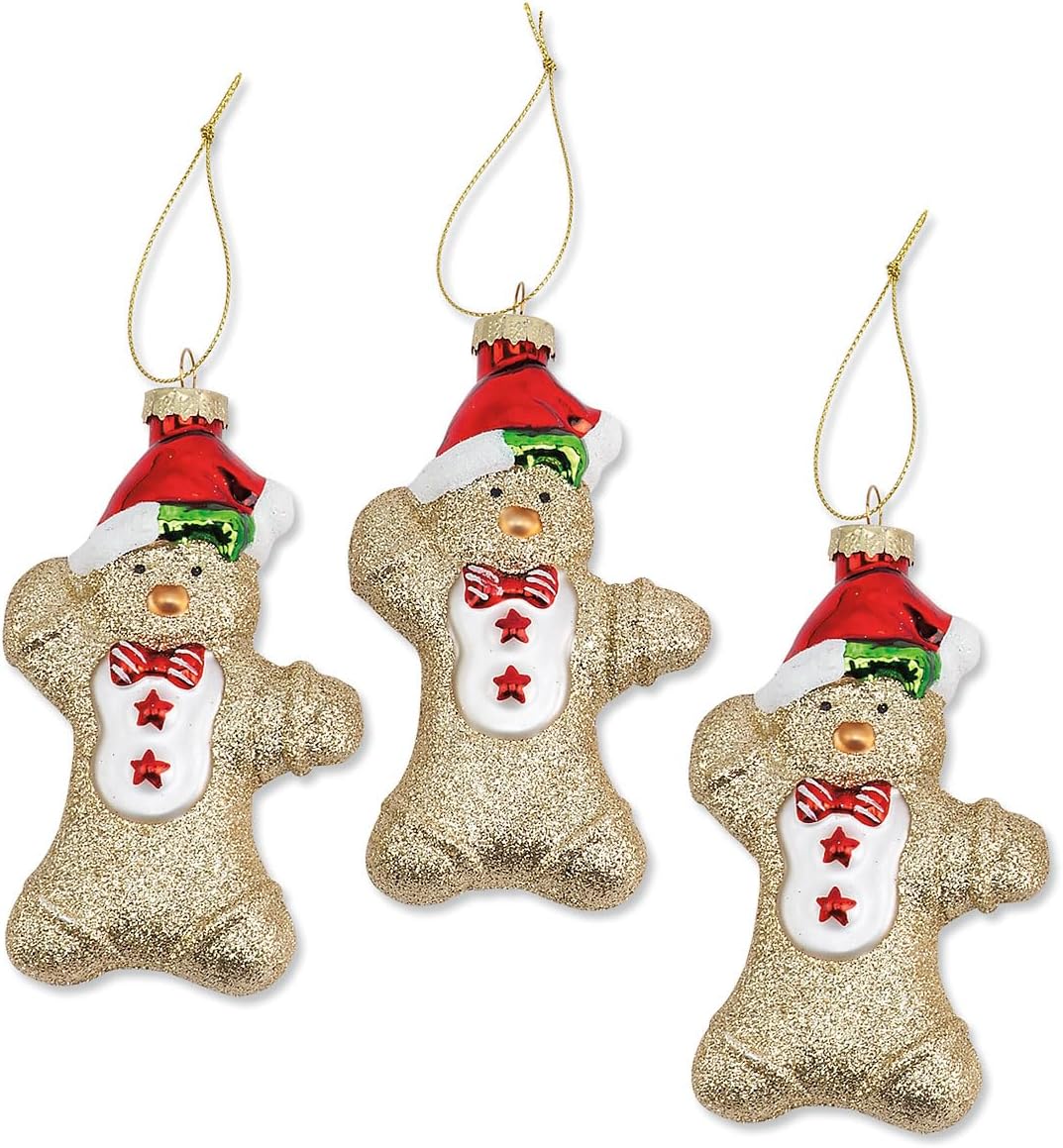 Lillian Vernon Gingerbread Man Christmas Ornaments - Set of 3, Large 3" x 5" Glass Ornament, Hanging String, Holiday Tree Décor, Gifts