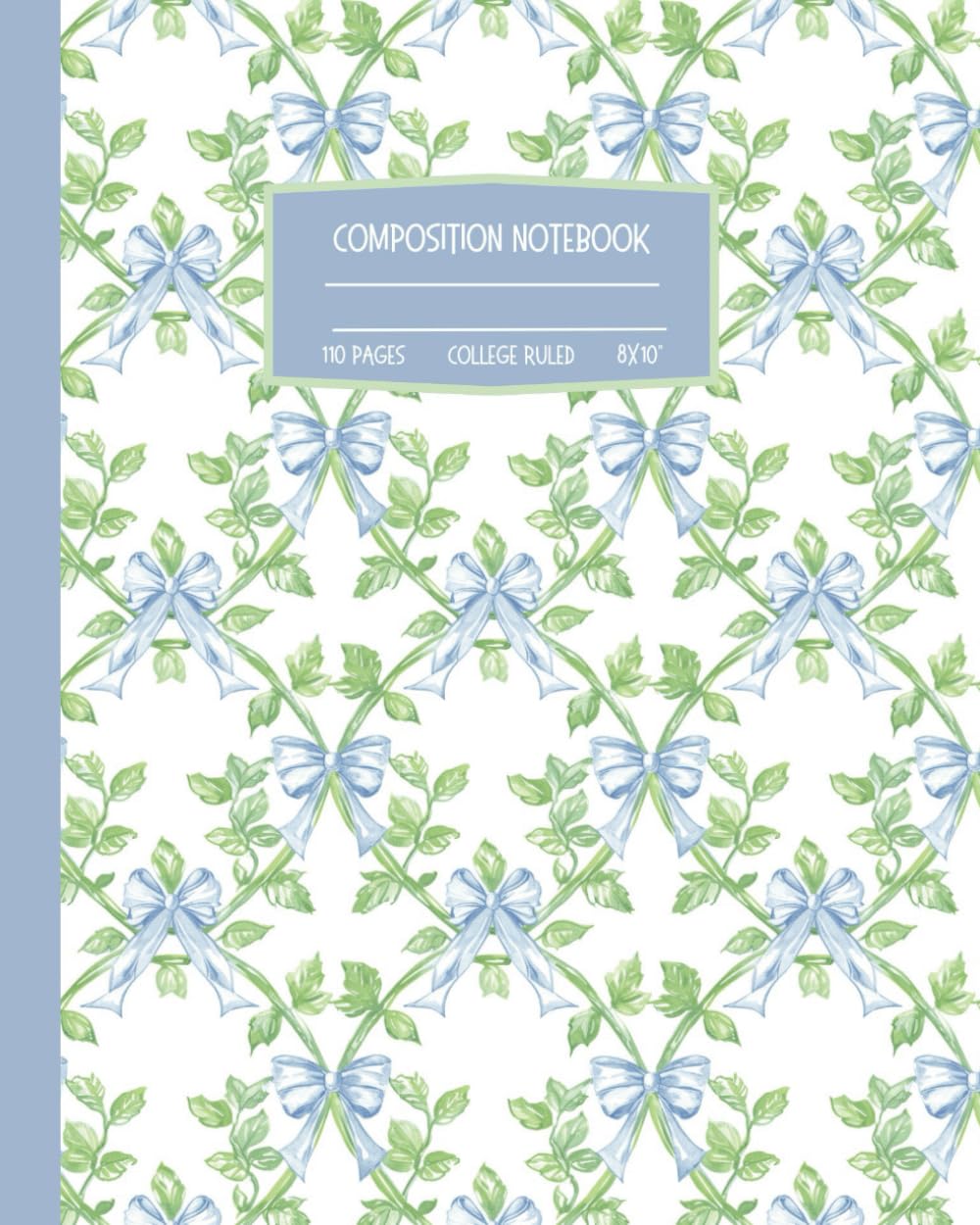 Blue Coquette Composition Notebook: Cute Preppy Bow College Rule Lined Journal; 8x10"