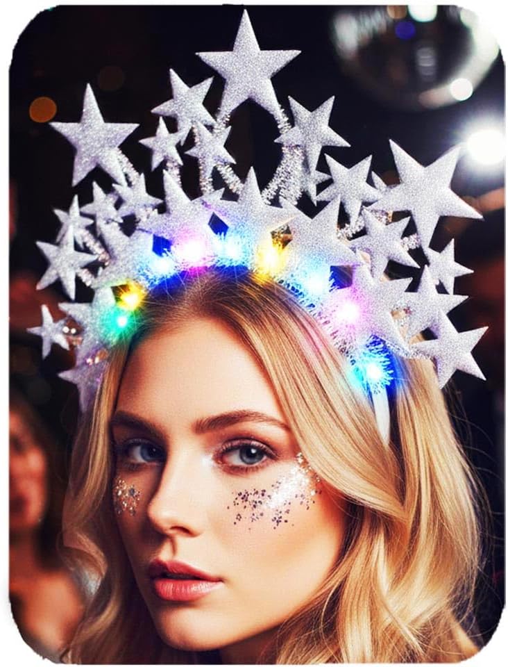 CAKURE Light Up Star Headband Christmas Star Headbands Holiday Star Hair Accessories for Women and Girls
