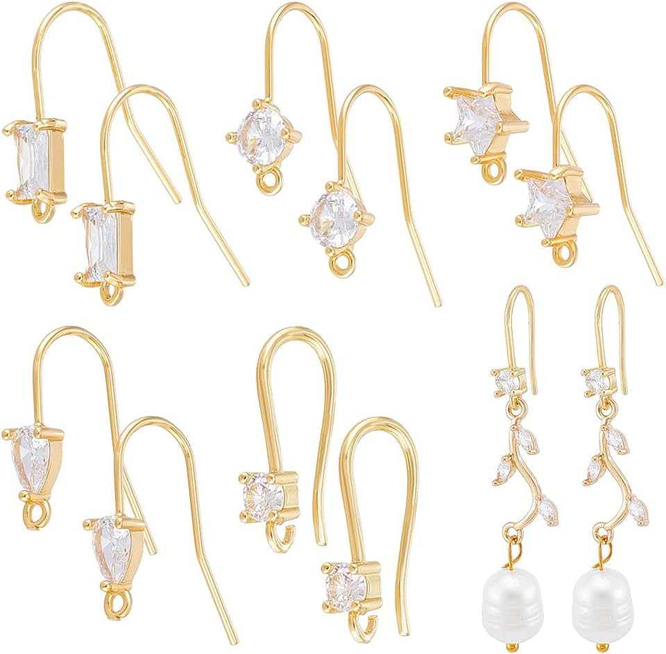 UNICRAFTALE 20pcs 5 Styles 18K Gold Plated Ear Hooks Metal French Hooks Rhinestone Ear Wires Crystal Dangle Finding Hook with Loops Cubic Zirconia Brass Ear Hooks for DIY Earring Jewelry Making