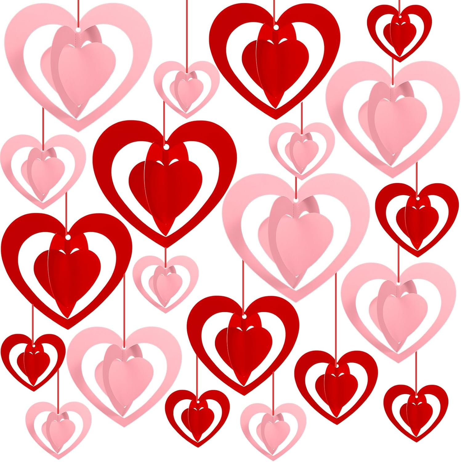 Pasimy 21 Pcs Valentines Day Hanging Decorations 3D Heart Shaped Decor Galentines Red Pink Heart Shaped Garland for Valentine Day Wedding Anniversary Engagement Galentines Party Supplies(Red and Pink)