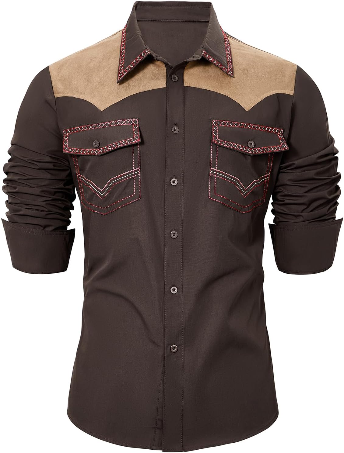 American Trends Mens Western Shirts Long Sleeve Cowboy Shirts for Men Casual Button Down Shirts Country Shirt