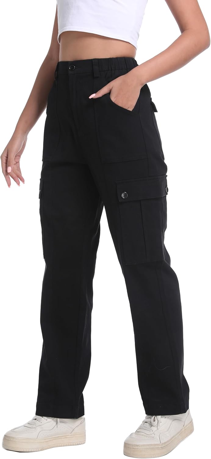 Tronjori Womens Cargo Pants High Waisted Casual Utility Trousers Stretch Straight Leg Streetwear Y2K