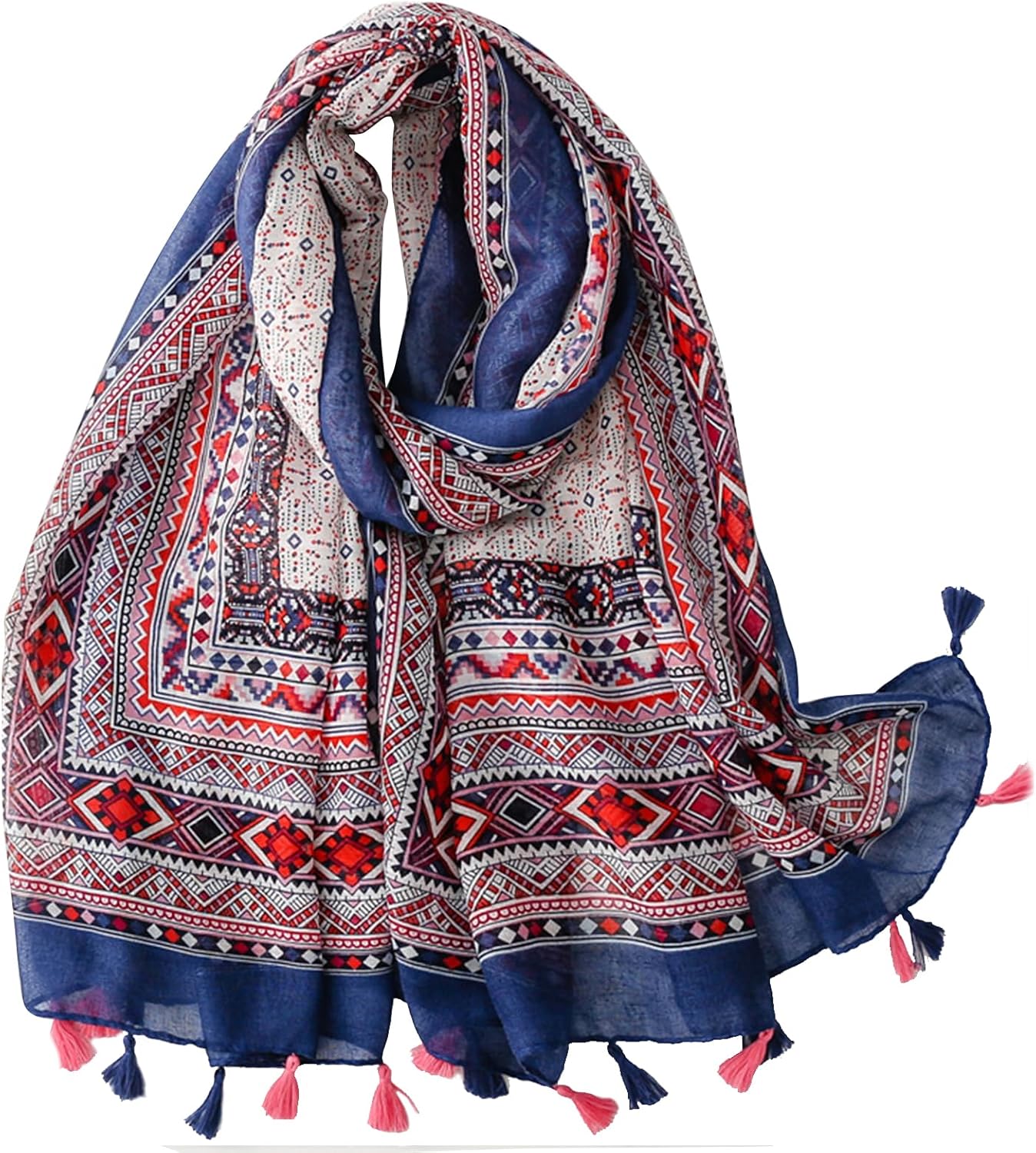 LEBOOBELL Womens Boho Scarf Lightweight Floral Printed Scarves Fall Winter Fashion Fringed Shawl