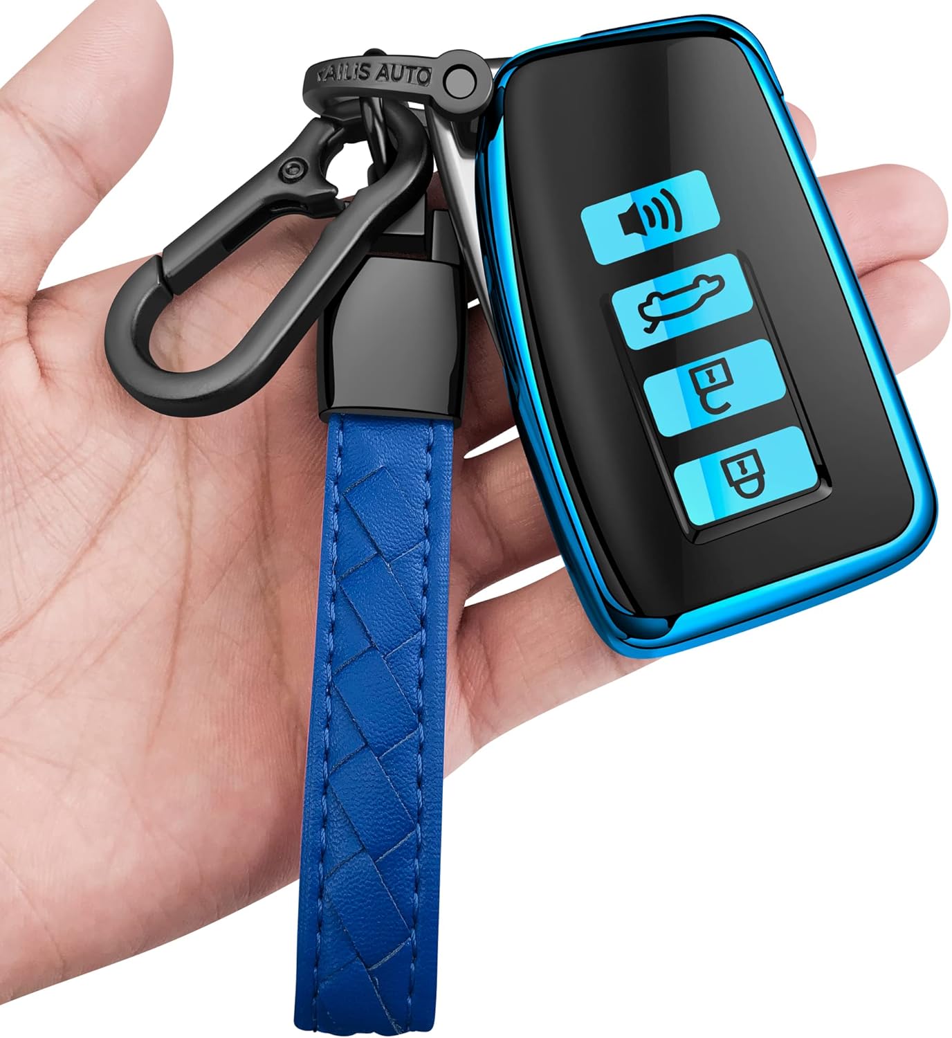 Sindeda for Lexus Key Fob Cover with Keychain Soft Full Protection Key Shell Key Case Compatible with Lexus RX IS ES GS LS NX RS GX LX RC LC (Blue)