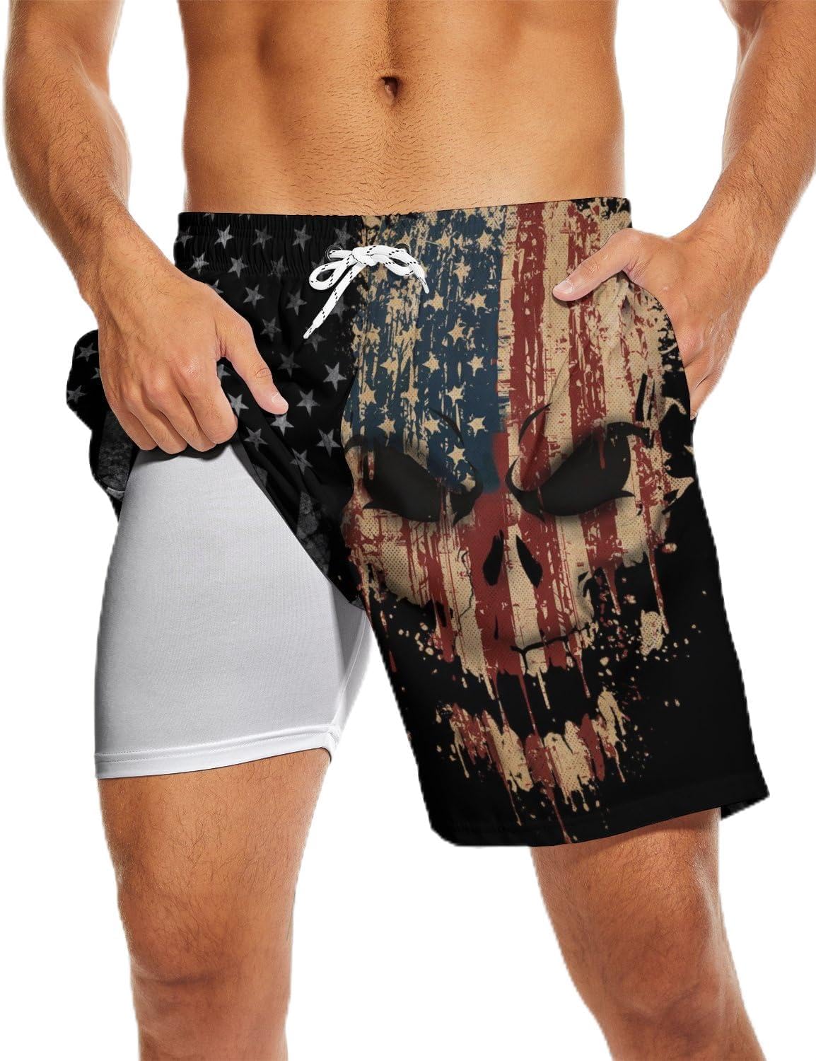Mens Swim Trunks Swimming Trunks with Compression Liner Board Shorts 7 inch Swim Shorts Swimsuit