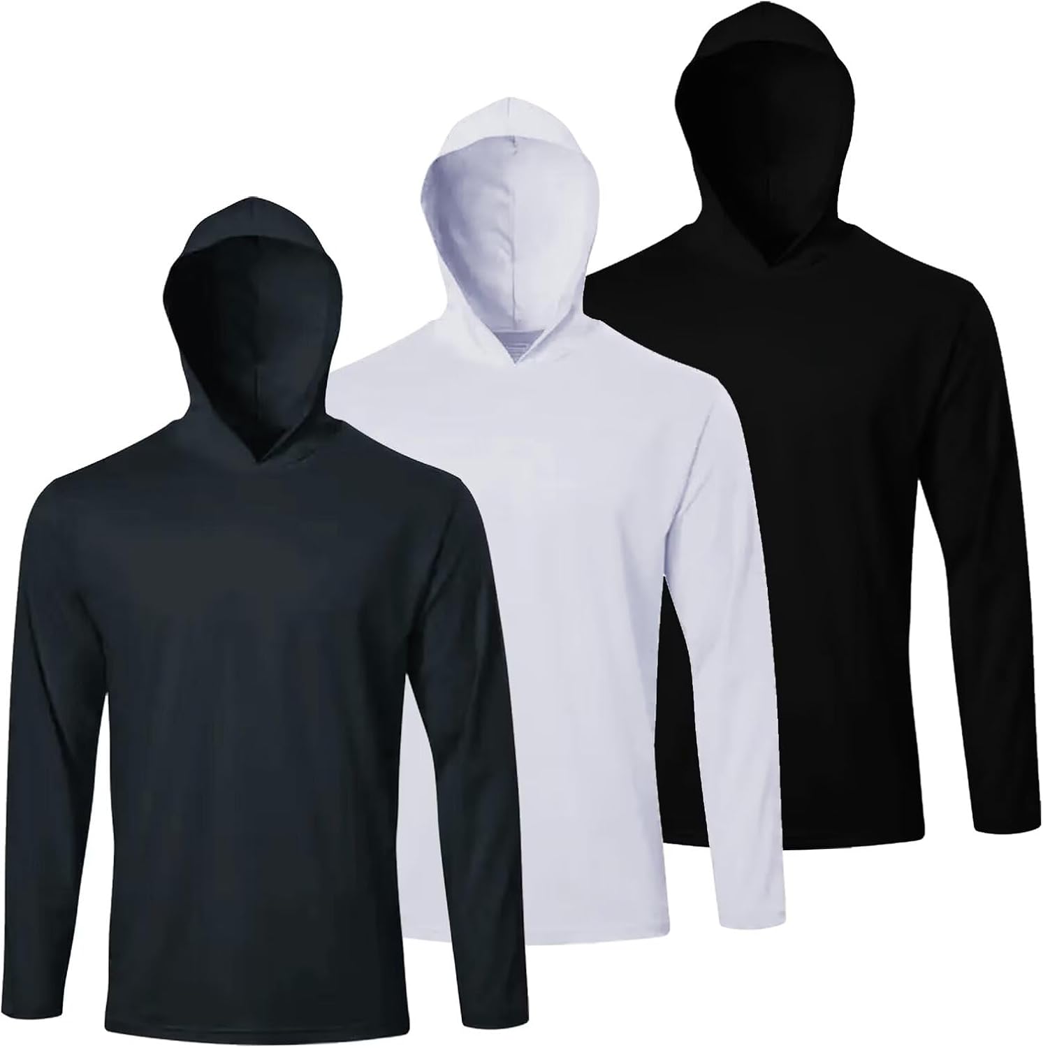 3 Pack Men's Long Sleeve Shirts Quick Dry Moisture Wicking Lightweight Sun Protection T Shirt for Running Outdoor Activities