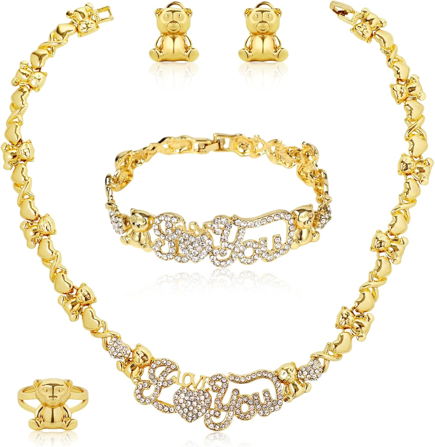 African Necklace Set Hugs and Kisses Gold Jewelry Sets For Women 18k Gold/Silver Filled LOVE Necklaces Jewelry Sets Wedding Jewelry Necklace Earrings Bracelet Ring Gifts