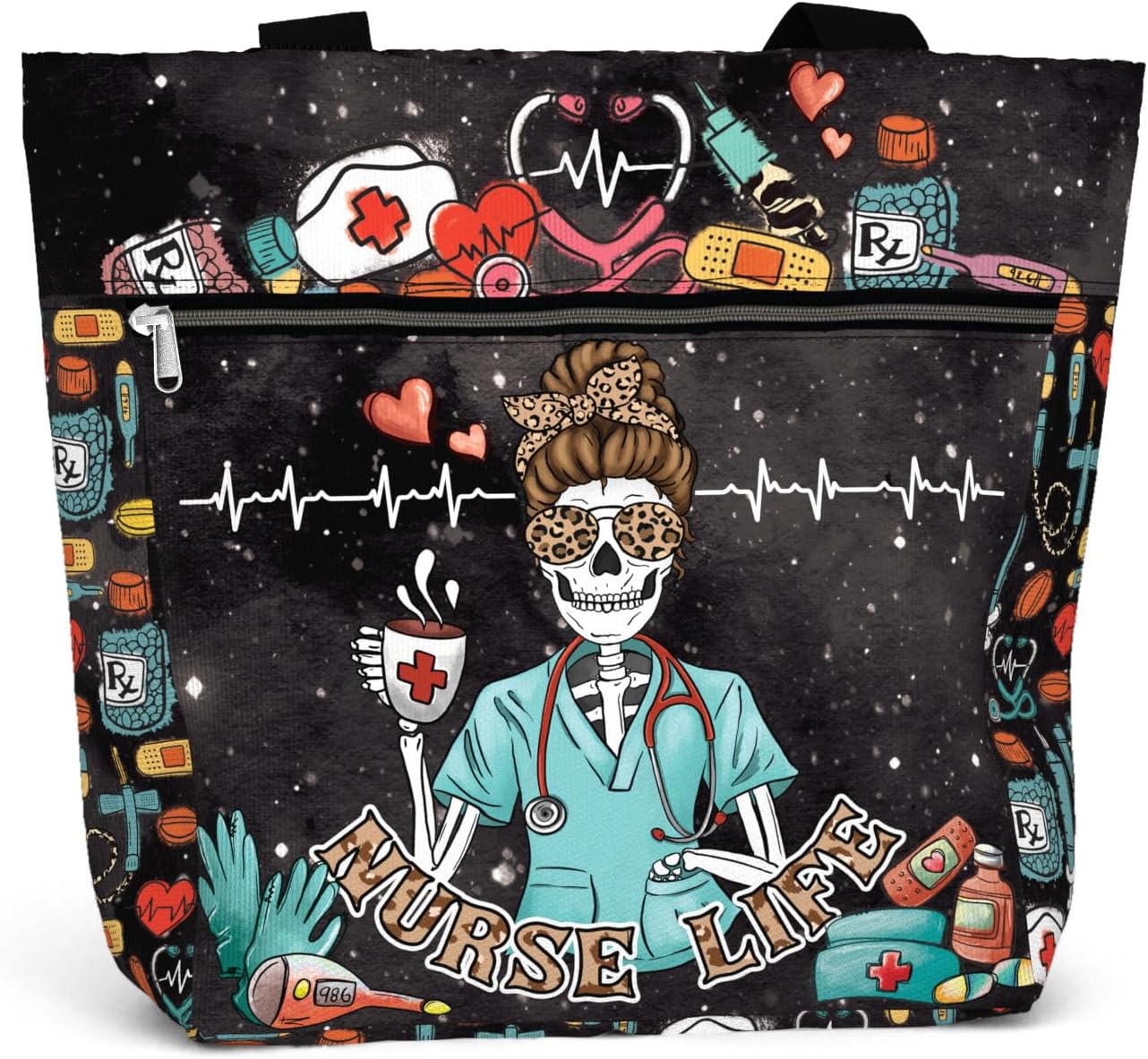 84hoods Large Waterproof Tote Bag with Pockets and Zipper for Work. Gift for Nurse. Shoulder Bag for Women.