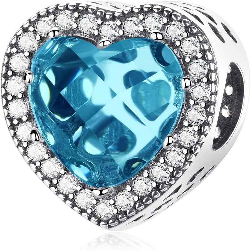 MICOO 925 Sterling Silver Sparkling Clear Charms Beads, Heart-shaped Circular Design With Cubic Zirconia Fit Pandora Original Bracelet Necklace, Gift for Women