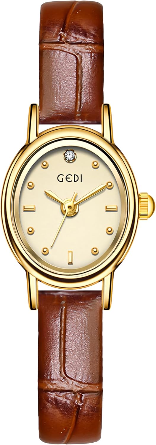 Gosasa Elegant Retro Women's Watch with Leather Strap Fashion Dress Diamond Small Oval Face Ladies Watch Casual Waterproof Quartz Wristwatch